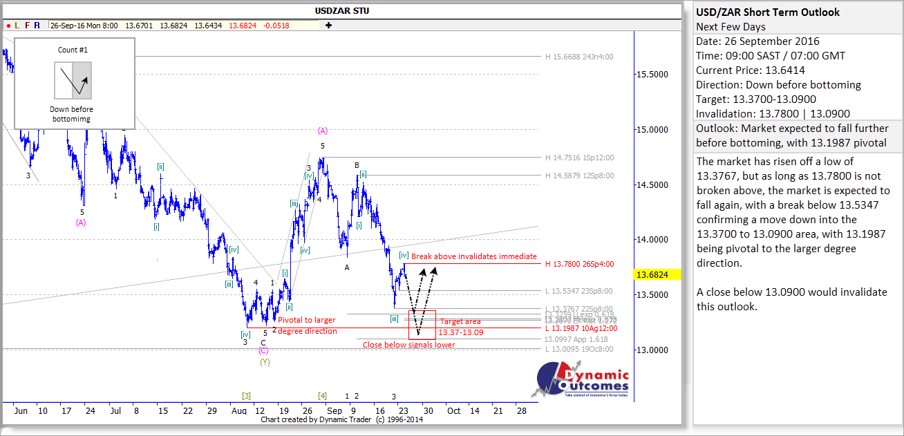 !USDZAR STU 20160929 tr2 By the close of business on Thursday, the Rand was over R13.90/$. By Friday morning, it was over R14.00/$.