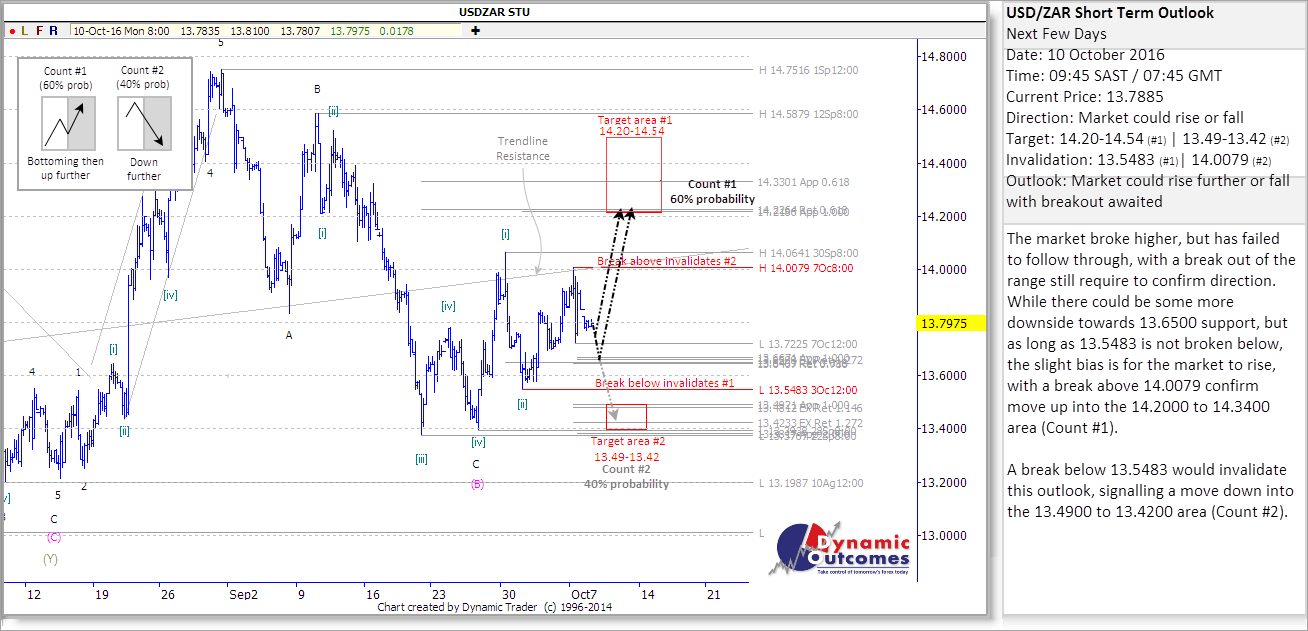 How It Happened (10-14 Oct 2016) Monday began with the Rand trading once again in the mid-13.70s against the Dollar. Fair positioning, but nothing too definite.