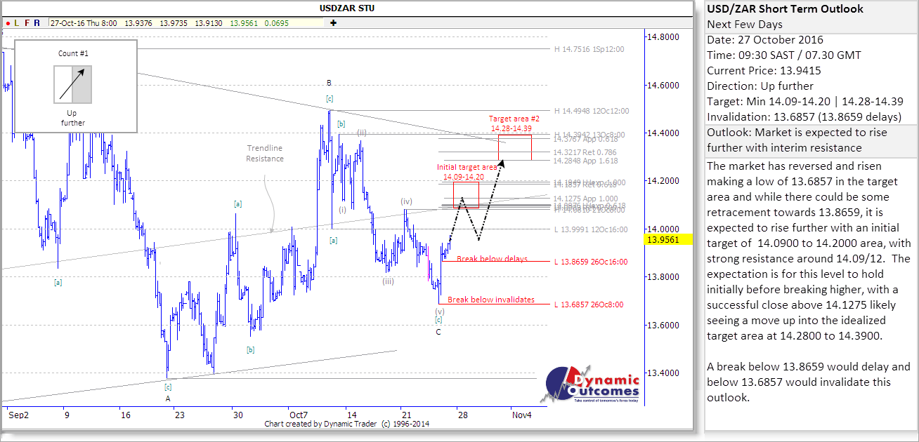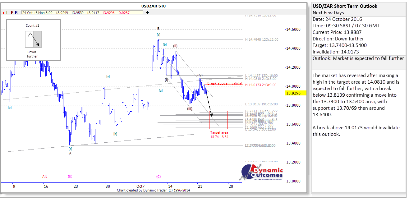 How It Happened (24-28 Oct 2016) The week began at a similar level to the past few weeks - it was bordering on the R14/$ level, but was holding in the mid 13.90s. With this slightly precarious position in mind, we set to work on our Monday morning forecast.