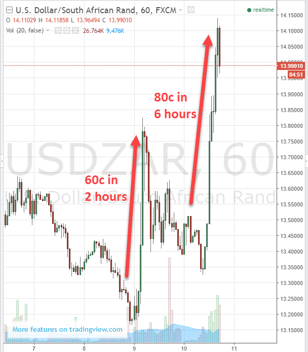 This all happened while South Africa slept in the early hours of Wednesday morning. By the time persons reached their offices on Wednesday morning, they were greeted with a Rand at 13.50, and a new American president about to be elected.